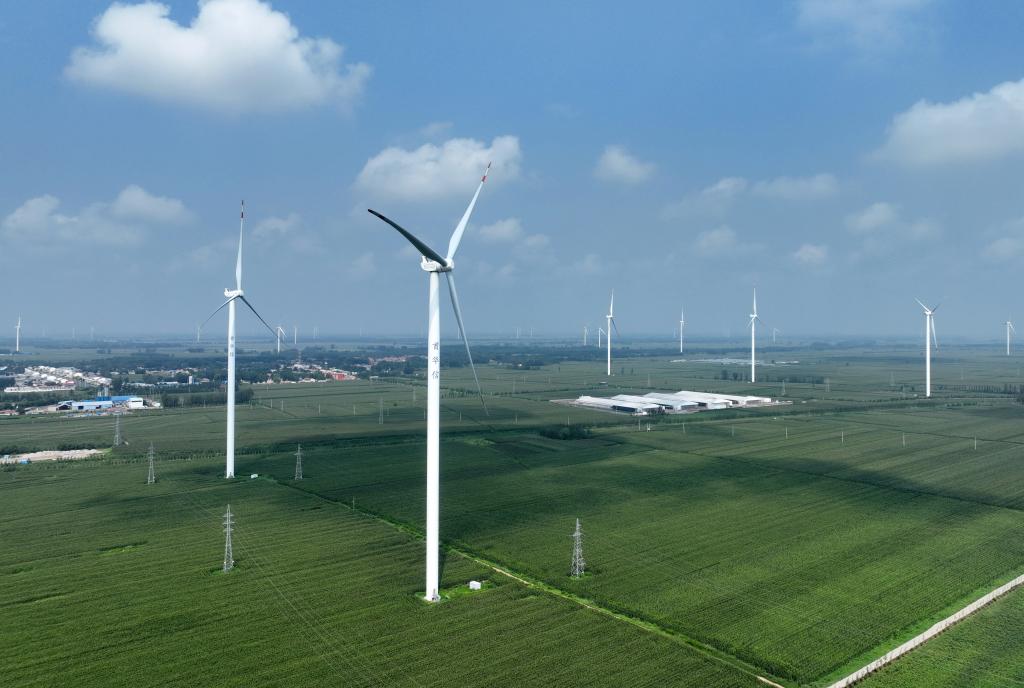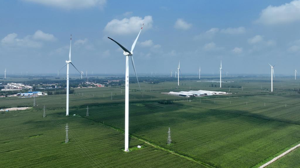 8月21日拍摄的河北省衡水市故城县三朗镇韩庄村附近的风电场(无人机照片)。
