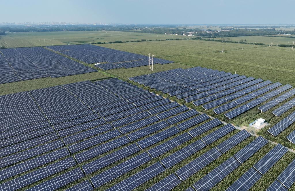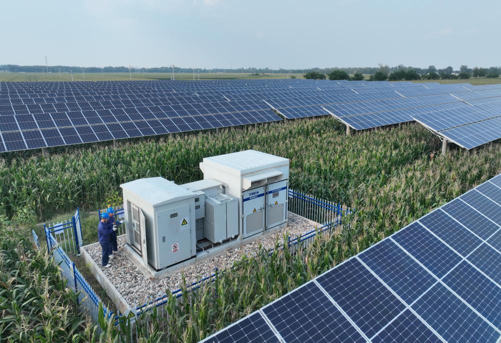 8月21日拍摄的河北省衡水市冀州区冀州镇附近的“农光互补”光伏发电场(无人机照片)。