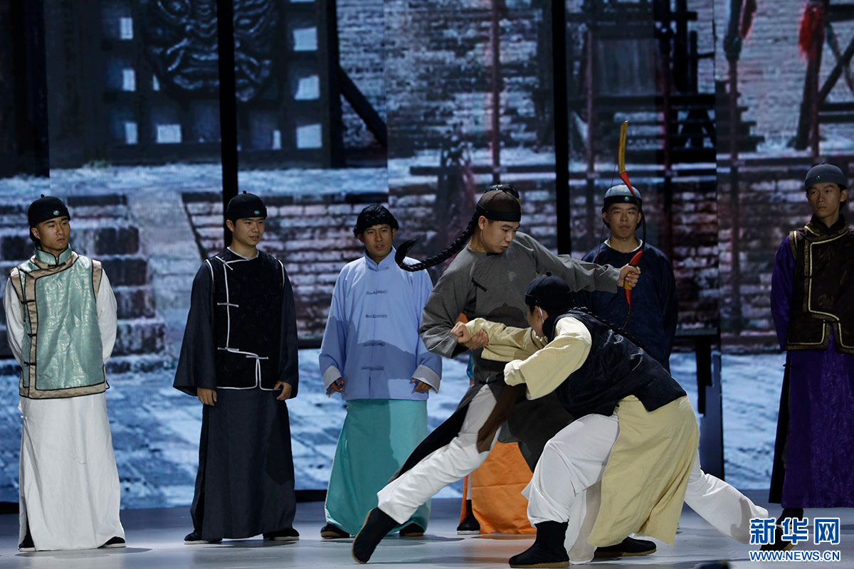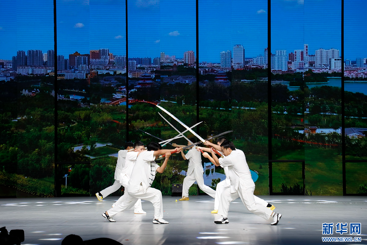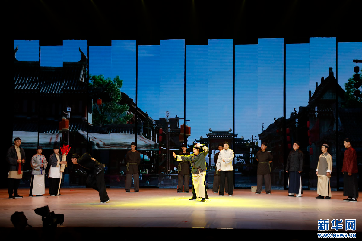 作为第十一届中国·沧州国际武术大赛的重要活动之一,8月21日晚,由沧州广播电视台主创的大型武术舞台剧《武魂》在沧州荀慧生大剧院精彩上演。舞台剧以武术表演为主,在挖掘当地武术悠久历史的基础上,融入现代时尚元素,并运用声、光、电等科技手段,给观众带来一场视听盛宴。舞台剧将于22日晚在沧州荀慧生大剧院继续上演。